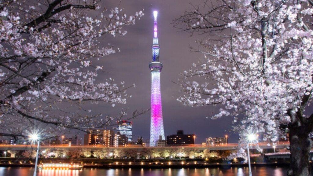 約1kmにわたって続く桜並木と、そびえ立つ東京スカイツリーが織りなす景色は、この時期ならではの絶景です。