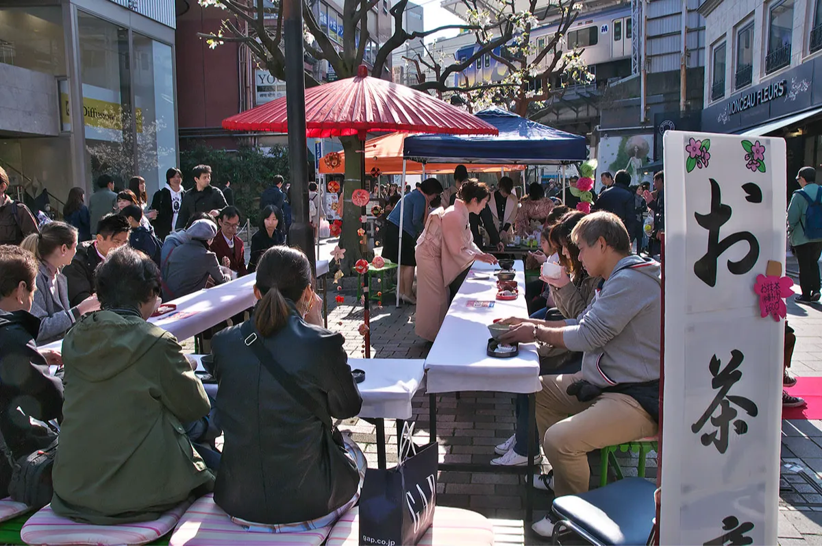 会場の九品仏川緑道は、東急大井町線の緑が丘駅から自由が丘駅周辺まで約1.7キロにわたり、ソメイヨシノを中心とした桜並木が続く名所として親しまれている。