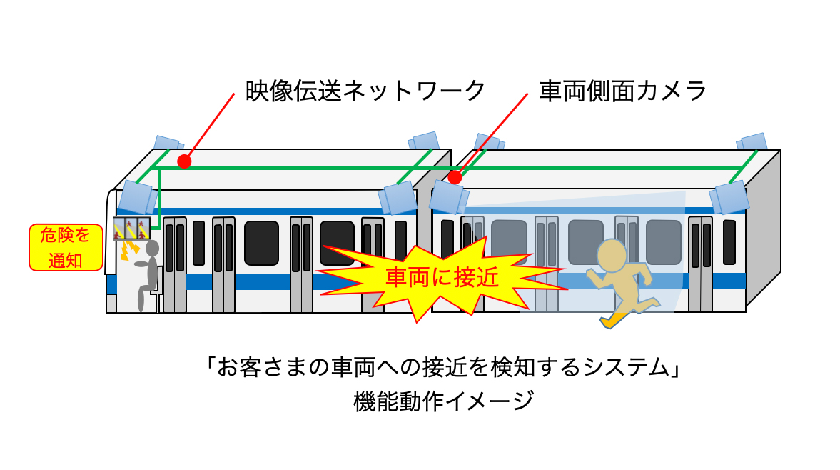 列車発車時、車両側面のカメラでホーム周辺の人物を検知し、危険な接近があれば運転士に通知するシステムを導入。あわせてJR東日本の車載ホームモニタシステムも採用する。