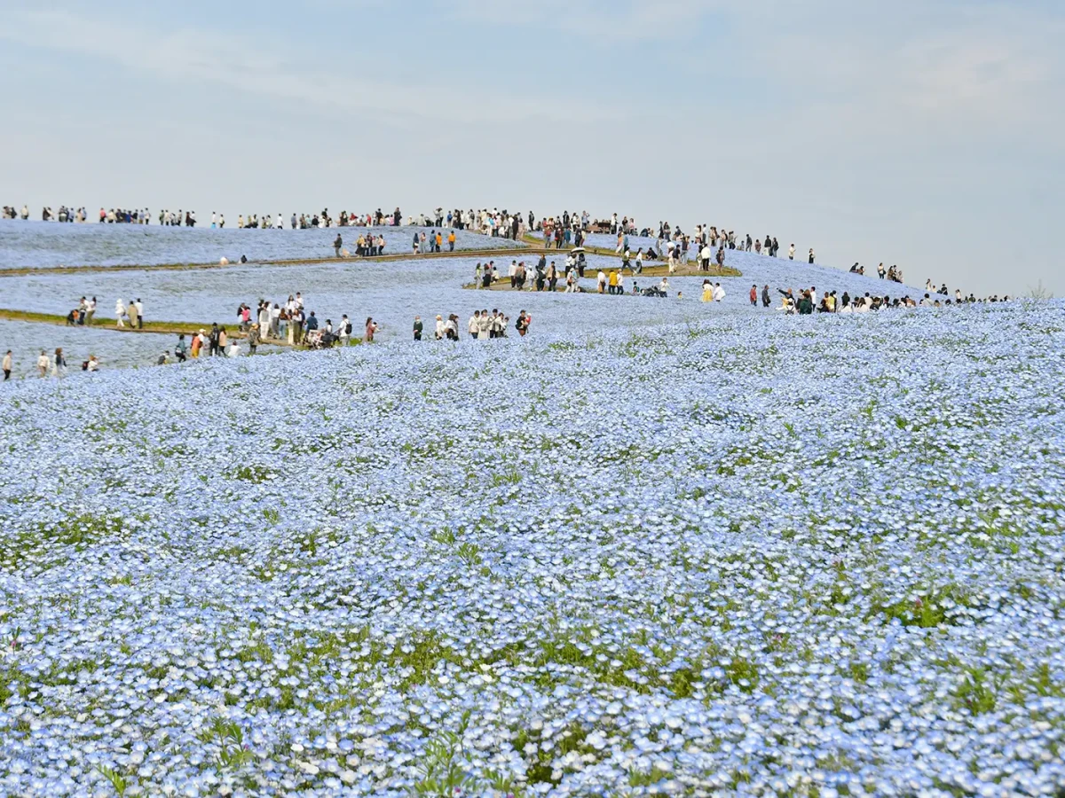 国営ひたち海浜公園の「みはらしの丘」では、約530万本のネモフィラが4月16日に見頃のピークを迎えました。美しい青の絶景は、4月25日頃まで楽しめる見通しです。
