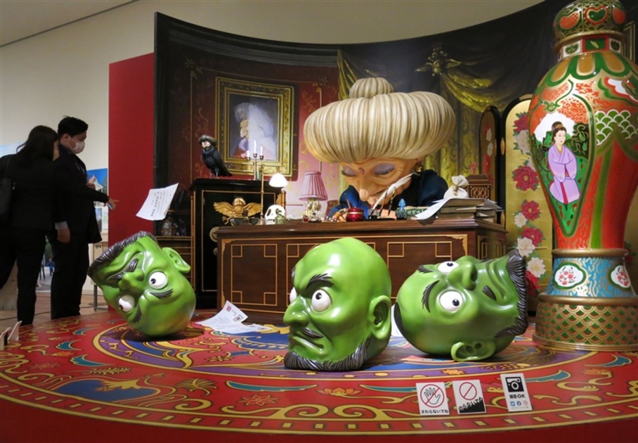 愛媛県松山市堀之内の県美術館で17日から開かれている「金曜ロードショーとジブリ展」は、25日に来場者数が1万人を突破し、記念セレモニーが行われた。