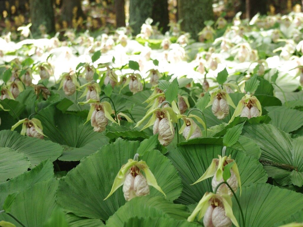 今年は昨年より開花が10日ほど早かったといい、約千株がかれんな花を咲かせた。今月いっぱいが見頃といい、エビネなども楽しめる。午前8時〜午後5時。入園無料。
