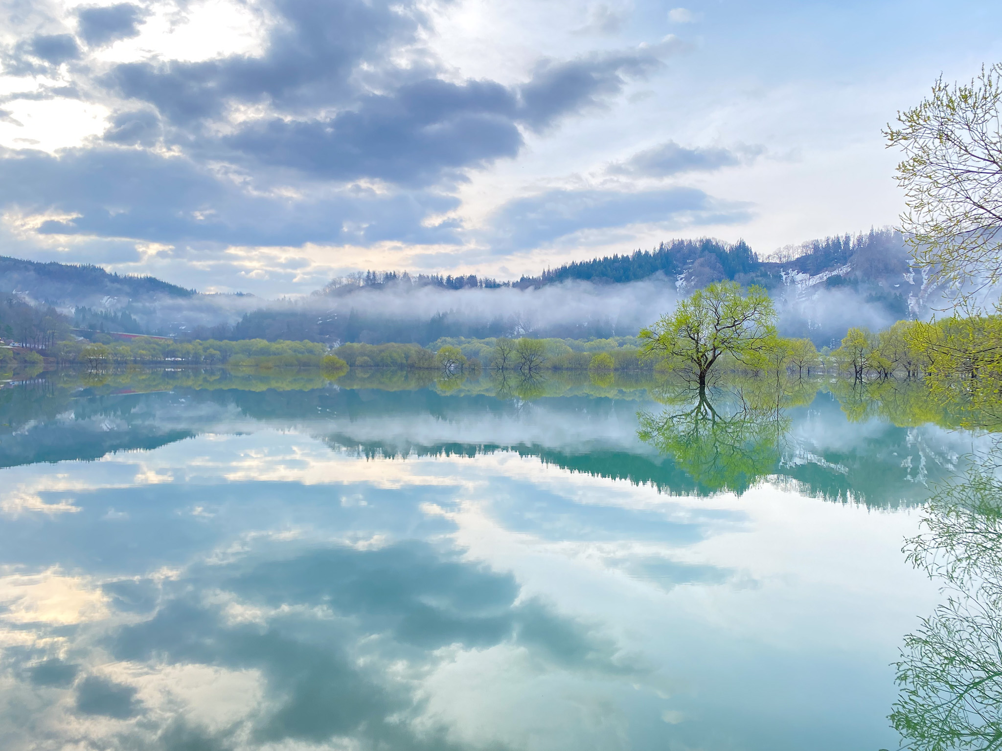 白川ダムによって形成された湖に雪解け水が流れ込むことで、3月下旬から湖畔のヤナギ林が水に浸かるこの現象は、下流の田植えに向けた放流で水位が下がる5月中旬ごろまで楽しめる。
